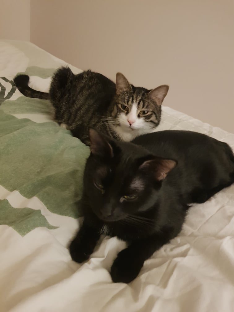 Fratrie d un frère Pistou tigre et blanc et sa sœur Doudou noire âges de 16 mois > Habitues a la vie en appartement ils sont propres doux et calmes < Il leur faudrait seulement une terrasse ou un balcon sécurise /Ils sont a adopter ensemble < Ils sont stérilisés vaccines testes négatifs Felv et Fiv et identifies par puces électroniques . Il est demande 260 euros de participation aux frais vétérinaires pour les 2< Ils sont visibles chez leur famille d accueil a St Maur des Fosses 94100