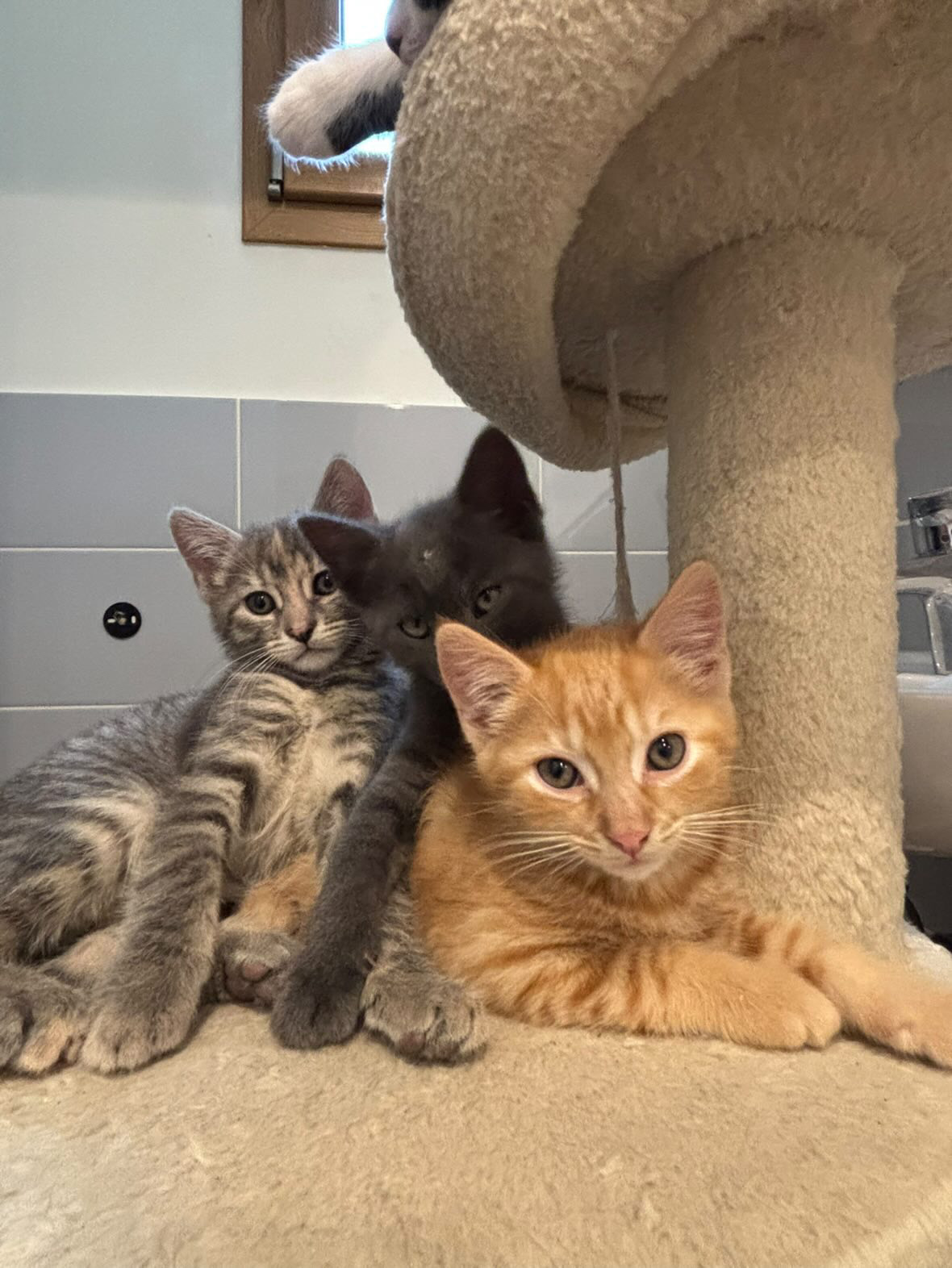 Il y a 3 petits gris, 2 tigrés, 2 roux, et un noir et blanc