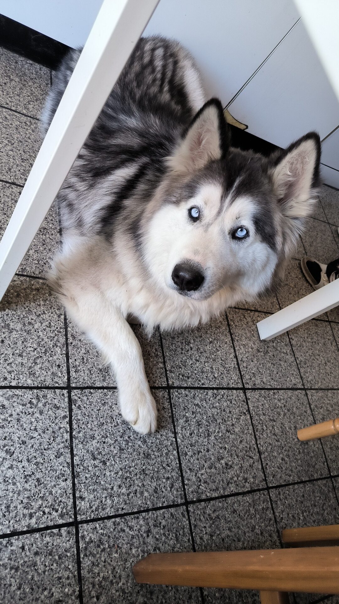 Titan est un chien Husky de Sibérie, croisé Samoyède, de 2 ans, au pelage gris et blanc, les yeux bleus, très affectueux, joueur, sociable avec les autres chiens, il adore les enfants, c'est un sportif, plein de vie, vacciné, stérilisé, il aspire à trouver une famille aimante, avec un grand jardin nécessaire à son épanouissement .