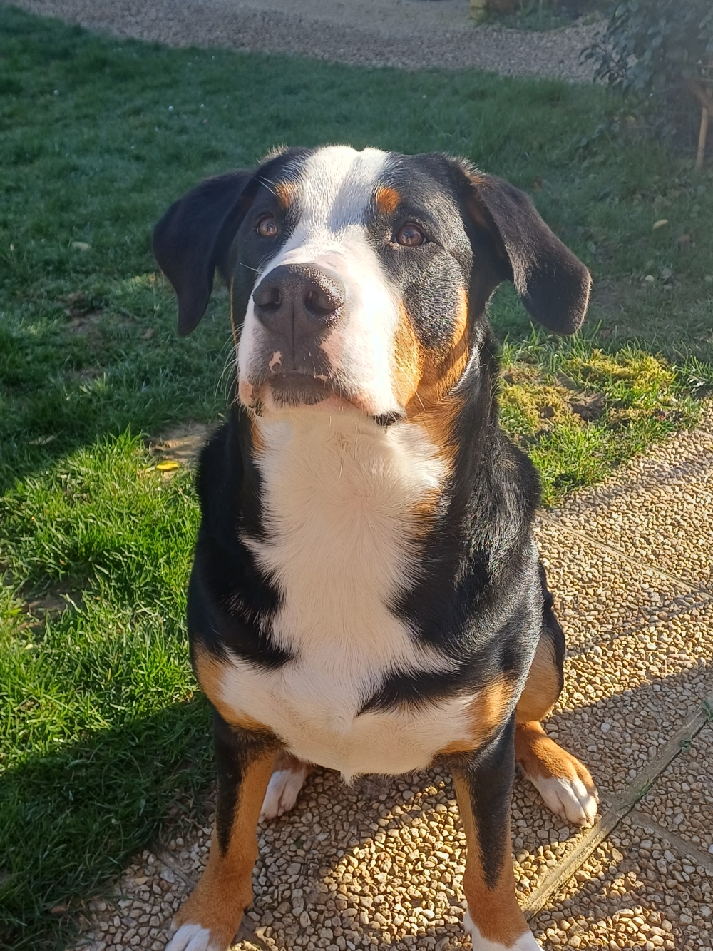 Moka est un grand bouvier suisse d'un an. Il aura besoin d'espace et de présence.