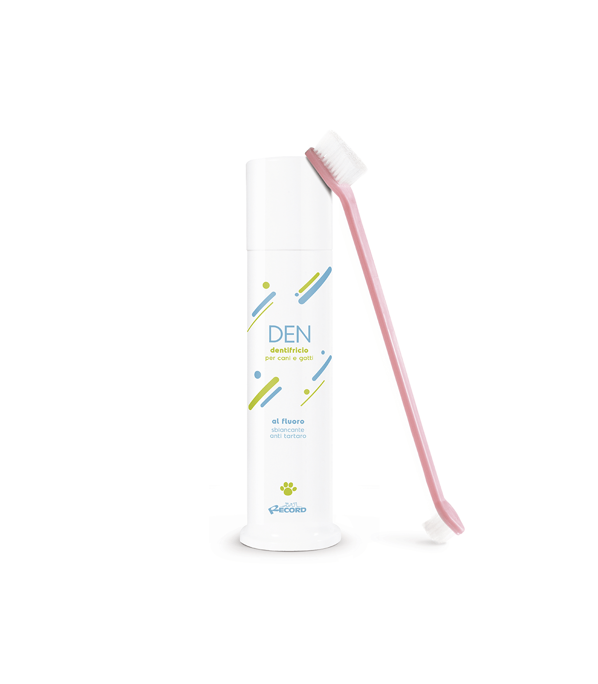 Dentifrice pousse pousse et brosse à dent double pour chien.